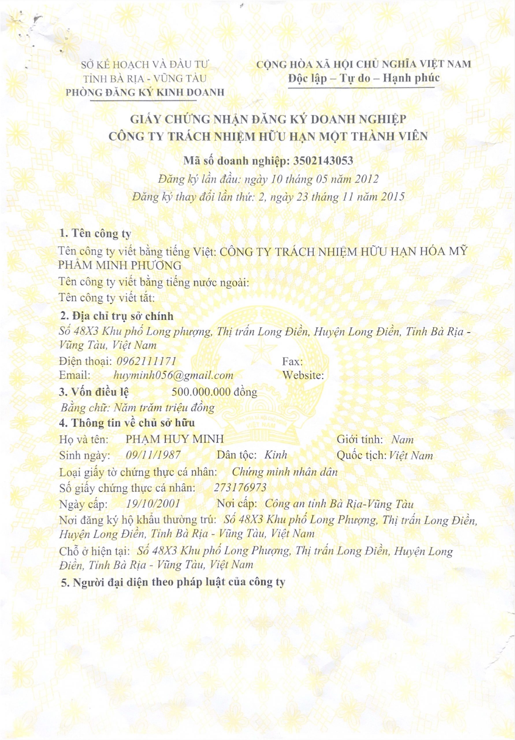 Thông tin giấy phép mạng Minh Phuong Corp